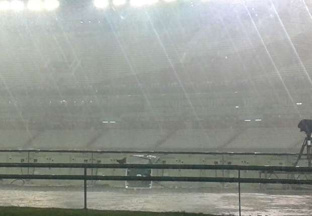 | Công tác chuẩn bị đã hoàn tất, nhưng trận đấu không thể diễn ra vì thời tiết xấu. Ảnh: Goal. |