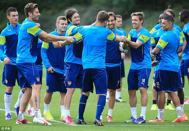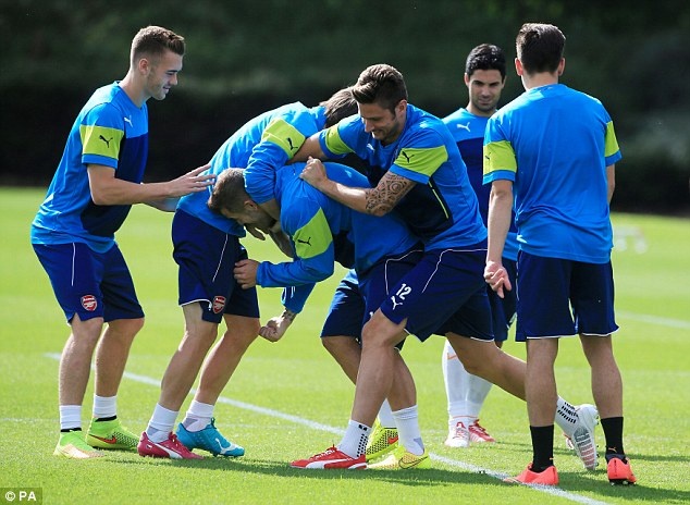 | Tại khu tập luyện London Colney, các Pháo thủ trêu đùa nhau trước trận đánh quan trọng. |