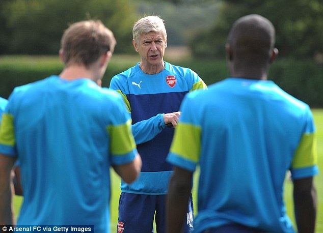 | HLV Arsene Wenger chỉ đạo các học trò tập luyện. |
