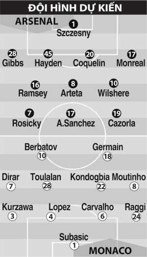 Chưa hết, Pháo thủ năm nay cũng được tăng cường sức mạnh đáng kể với những bản hợp đồng như Alexis Sanchez, Calum Chambers… Thêm vào đó, Arsenal cũng có quyết tâm cao hơn Monaco bởi họ coi Emirates Cup 2014 là dịp để thử nghiệm đội hình trước trận tranh Community Shield với Man City vào cuối tuần sau.