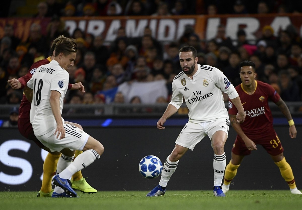 2': Real Madrid có pha tấn công đầu tiên. Tuy nhiên, quả treo bóng của Marcelo không đến được vị trí của Carvajal trong khu vực cấm địa của AS Roma.