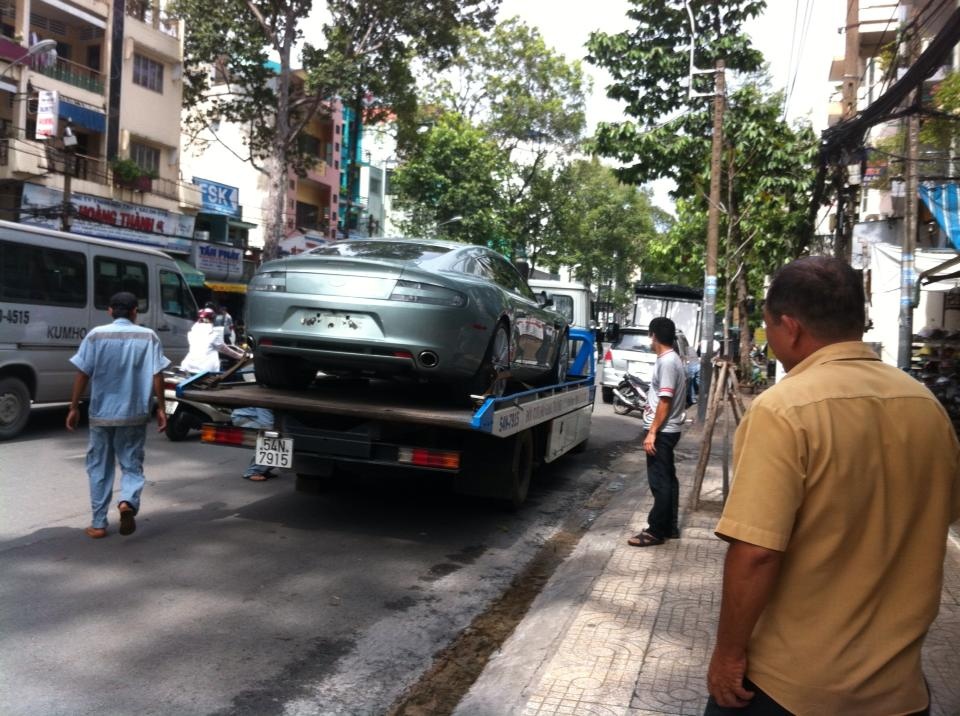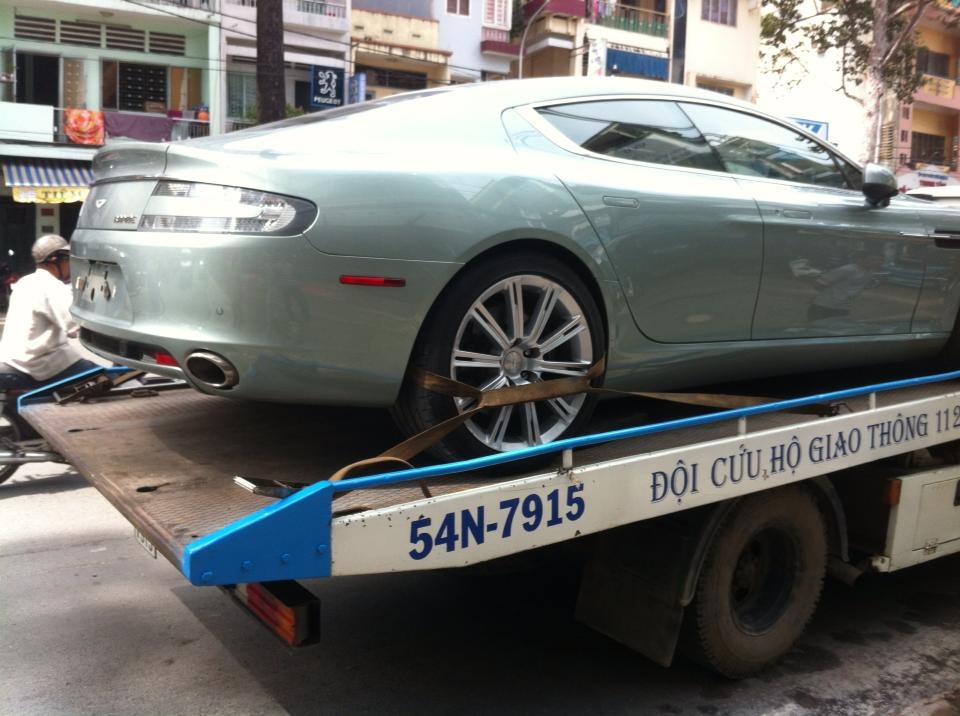 | Aston Martin Rapide màu xanh nhạt ở Sài Gòn là hàng chạy lướt. |