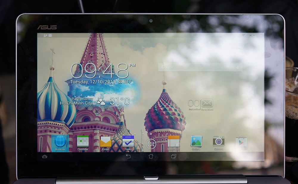 | Và khi dùng Android 4.2.2, máy sử dụng phần cứng tích hợp bên trong cụm màn hình, bao gồm vi xử lý Intel Atom Clover Trail 2560 (dành cho phiên bản demo), RAM 2GB, chip nhớ 16 GB (tùy phiên bản). Asus Transformer Book Trio có màn hình đạt độ phân giải Full HD, tấm nền IPS. |