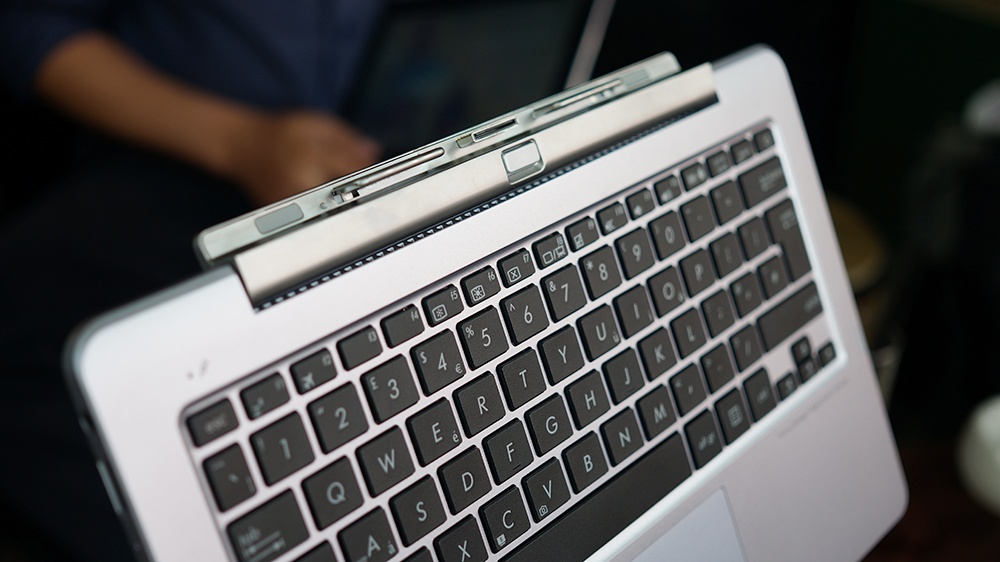 | Khi kết hợp lại với nhau, Asus Transformer Book Trio có kích thước tương tự như một laptop 11,6 inch. |