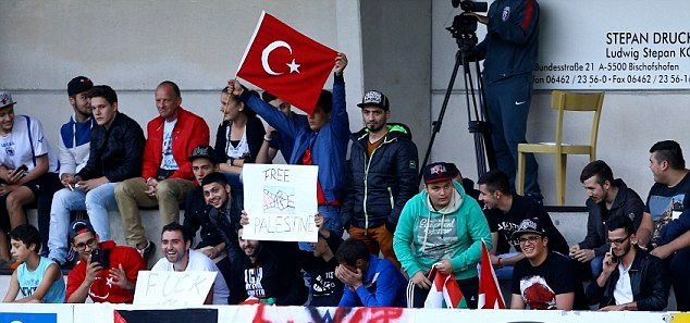 | Trước đó, xuất hiện trên khán đài, khá nhiều các CĐV mang băng-rôn phản đối đại diện đến từ Israel, Maccabi Haifa. |