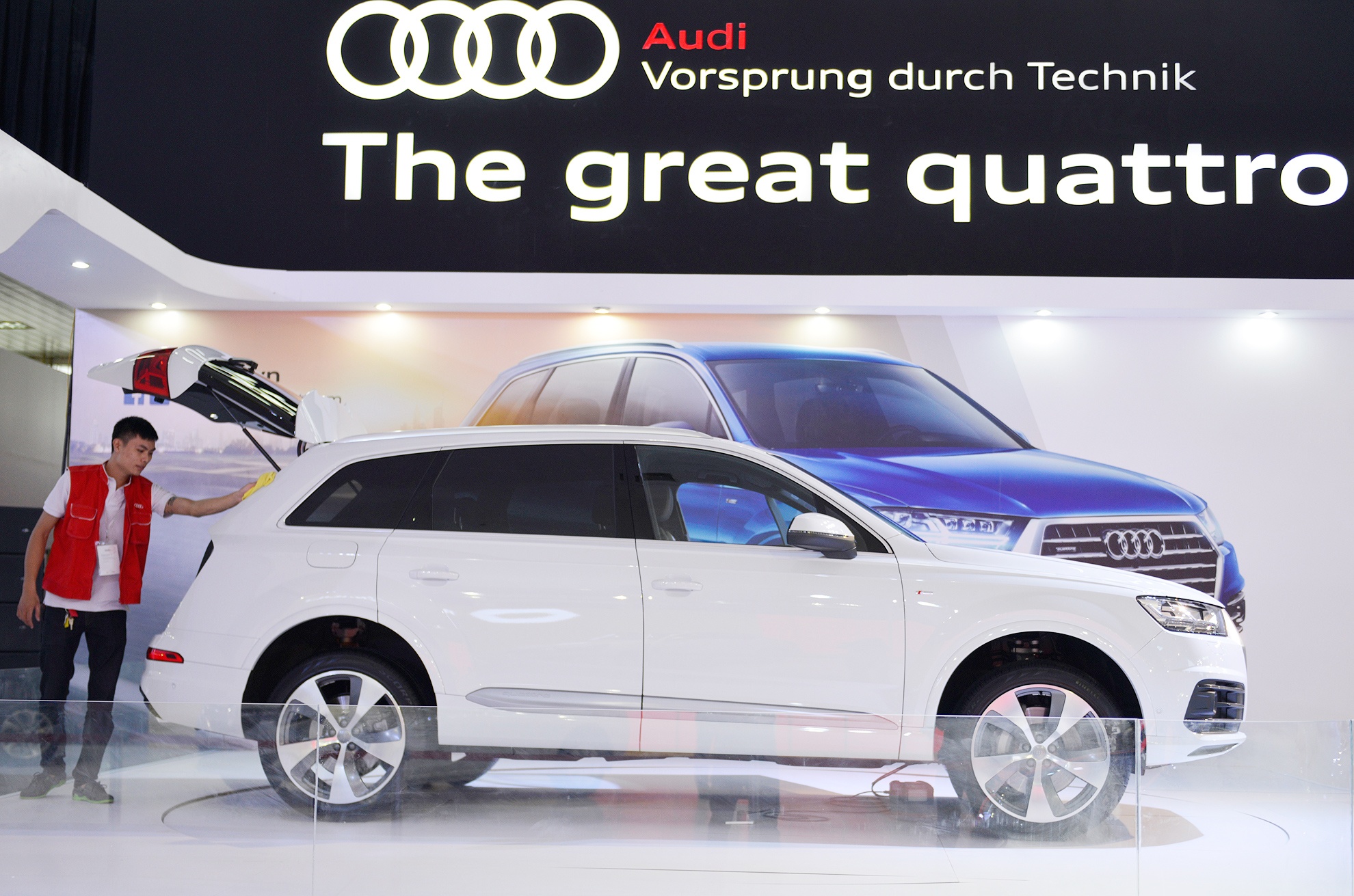 Mẫu xe Q7 mới là ngôi sao sáng nhất trong gian hàng của Audi Việt Nam tại triển lãm ôtô nhập khẩu đang diễn ra ở Hà Nội. Phiên bản dành cho thị trường Việt Nam trang bị động cơ V6 3.0 TFSI kết hợp hộp số 8 cấp tiptronic cùng hệ dẫn động 4 bánh toàn thời gian giúp sản sinh công suất 245 kW (333 mã lực), mô-men xoắn 440 Nm. Xe chỉ mất 6,3 giây để xe tăng tốc từ 0 tới 100km/h. Mức tiêu thụ nhiên liệu là 7,9 lit/100 km.