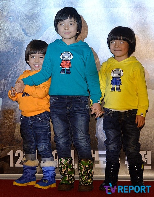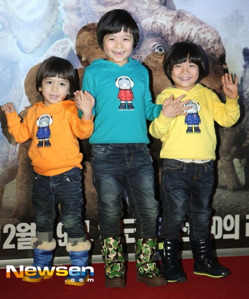 | Vào tối qua (18/12), ba anh em nhà bé Mason đã có mặt trong buổi công chiếu phim Đi chơi với khủng long 3D được tổ chức tại rạp CGV Yongsa, Seoul. |