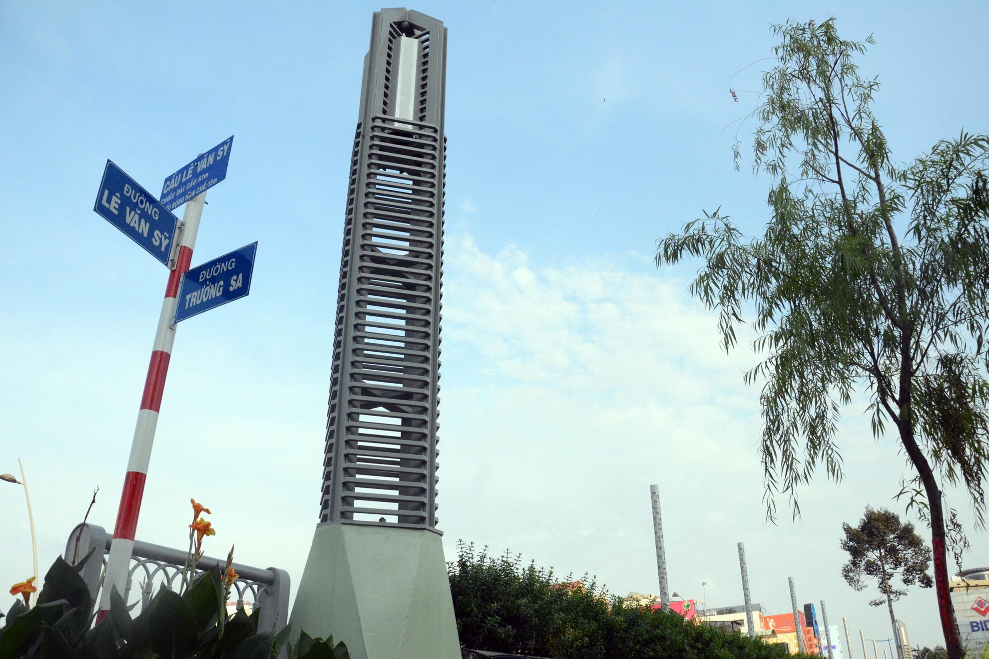 | Đường Trường Sa, Hoàng Sa thông suốt dưới gầm cầu được thiết kế rộng rãi cho các phương tiện lưu thông và một phần dành cho người đi bộ. Bên bờ tường gầm cầu được trang trí hình một đầm sen bằng gốm sứ và trồng hoa làm cho khu vực này sáng đẹp, văn minh hơn. |