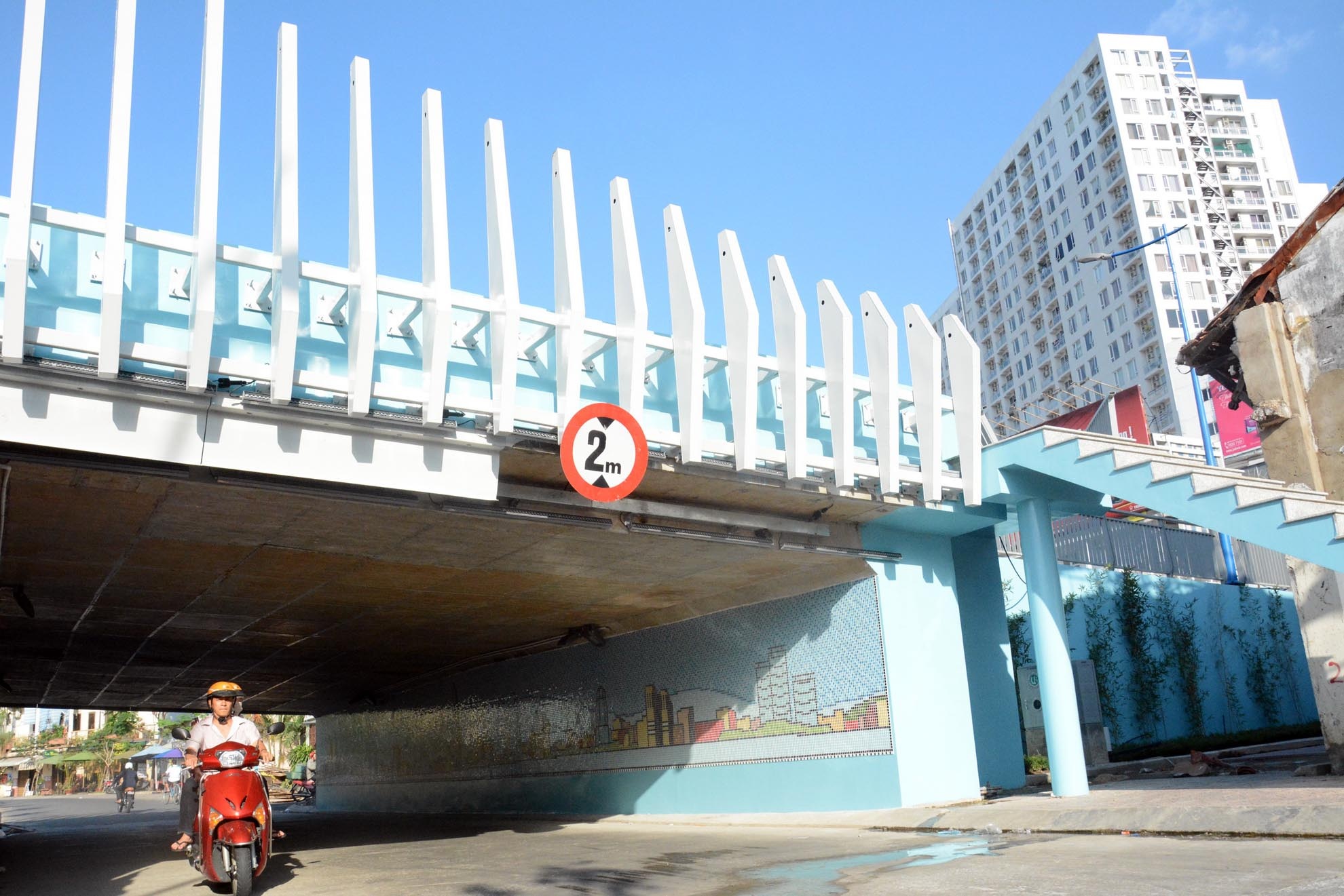| Cầu được nâng cao độ tĩnh không, tạo thuận lợi cho các phương tiện lưu thông trên đường Hoàng Sa và Trường Sa được thông suốt. Được thiết kế với kiến trúc đẹp, nhiều chi tiết trang trí kết hợp cảnh quan, hoa, cỏ xung quanh làm cho cây cầu không bị khô cứng. |