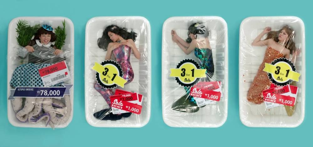 Trước đó, Nana, Raina và Lizzy đã khiến fan đứng ngồi không yên với hình tượng các nàng tiên cá bị bắt giữ và thành cá đóng hộp trong siêu thị.