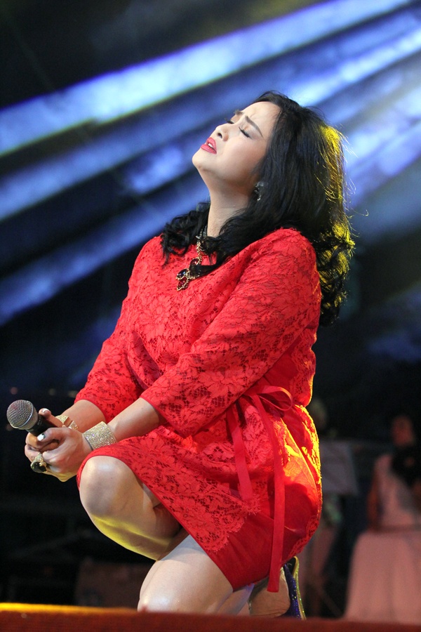 | Trong những khoảnh khắc thăng hoa nhất, Thanh Lam không ngần ngại quỳ trên sân khấu để thể hiện xúc cảm của mình. |