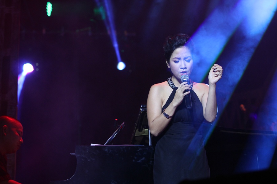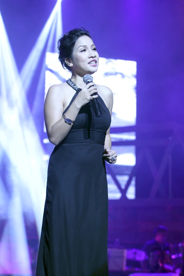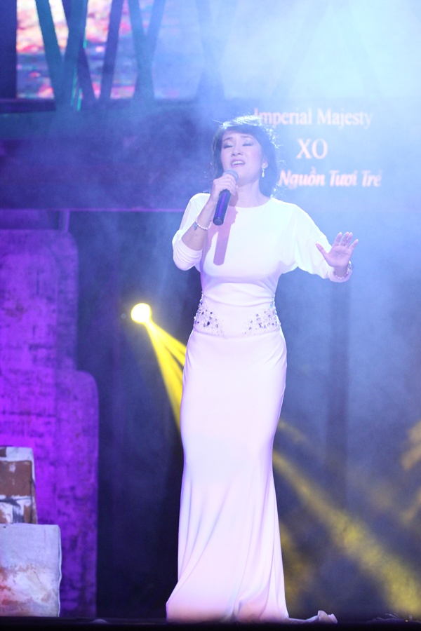 | Trong đêm nhạc tối 10/8, cô lần lượt thể hiện các ca khúc mà mình từng biểu diễn thành công như "Hà Nội đêm trở gió", "Im lặng đêm Hà Nội" và "Thu quyến rũ". |