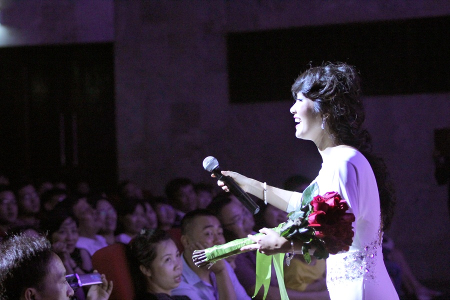 | Với bộ đầm đỏ rực, Thanh Lam nhanh chóng thổi lửa vào những ca khúc như "Hoa sữa", "Hướng về Hà Nội"... |