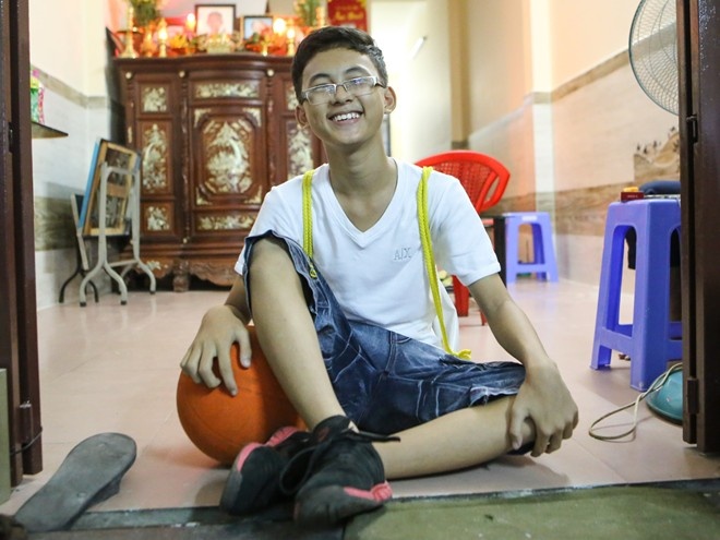 | Thịnh Vinh thích chơi bóng rổ và mơ ước trở thành vận động viên chuyên nghiệp. Ảnh: Nguyễn Thành. |