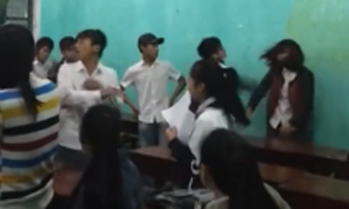 Hôm qua (2/3), đoạn clip dài gần 2 phút ghi lại cảnh ba nam sinh với dáng vẻ hung hãn cùng lúc đánh một nữ sinh ngay trong lớp học đã nhanh chóng lan truyền trên các diễn đàn, trang mạng xã hội.