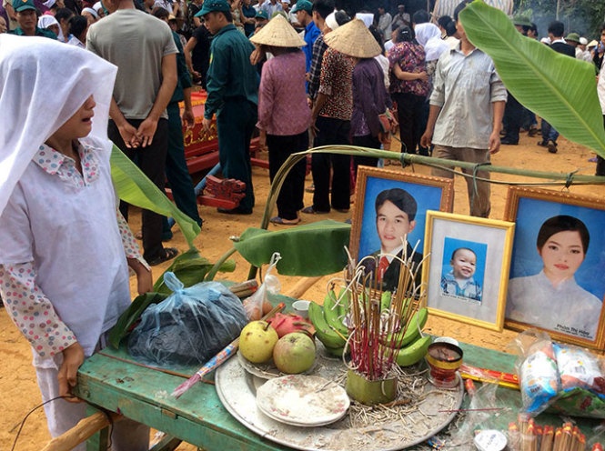 Căn nhà nhỏ của gia đình nạn nhân Trần Văn Long, Phàn Thị Hoa đã được dỡ đi những tấm cửa từ chiều tối hôm trước. Nơi bậc cửa, một chiếc bàn thờ đơn sơ đặt vội với di ảnh 3 người trong gia đình. Trong căn nhà nhỏ ấy, tiếng khóc than của thân nhân rền rĩ suốt từ đêm đến sáng.
