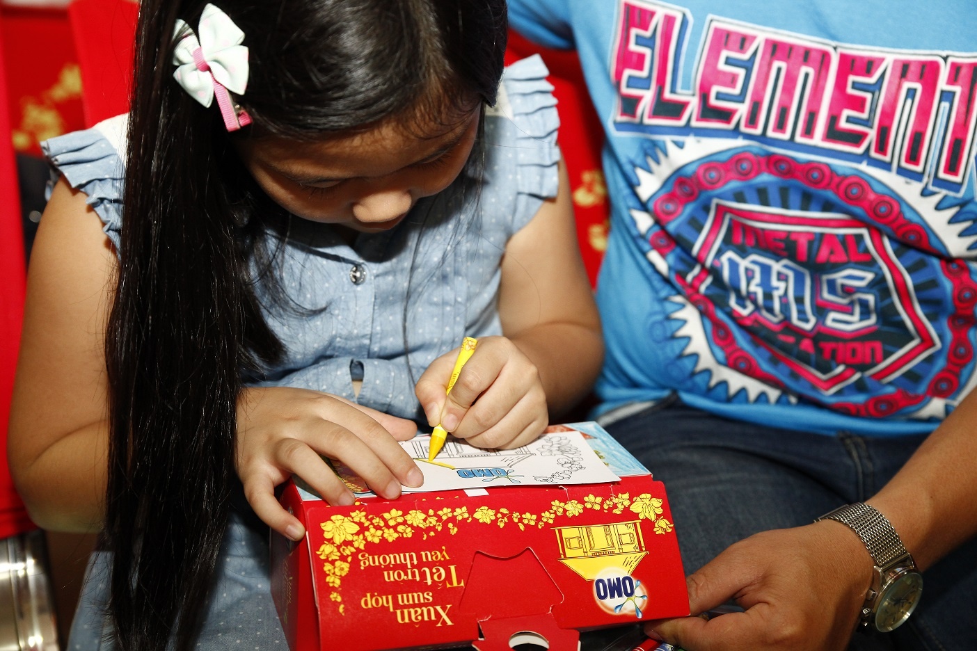 | Bé được tặng hộp vẽ, có thể tự tay tô màu để thiết kế hộp quà sum họp dành tặng ông bà. |