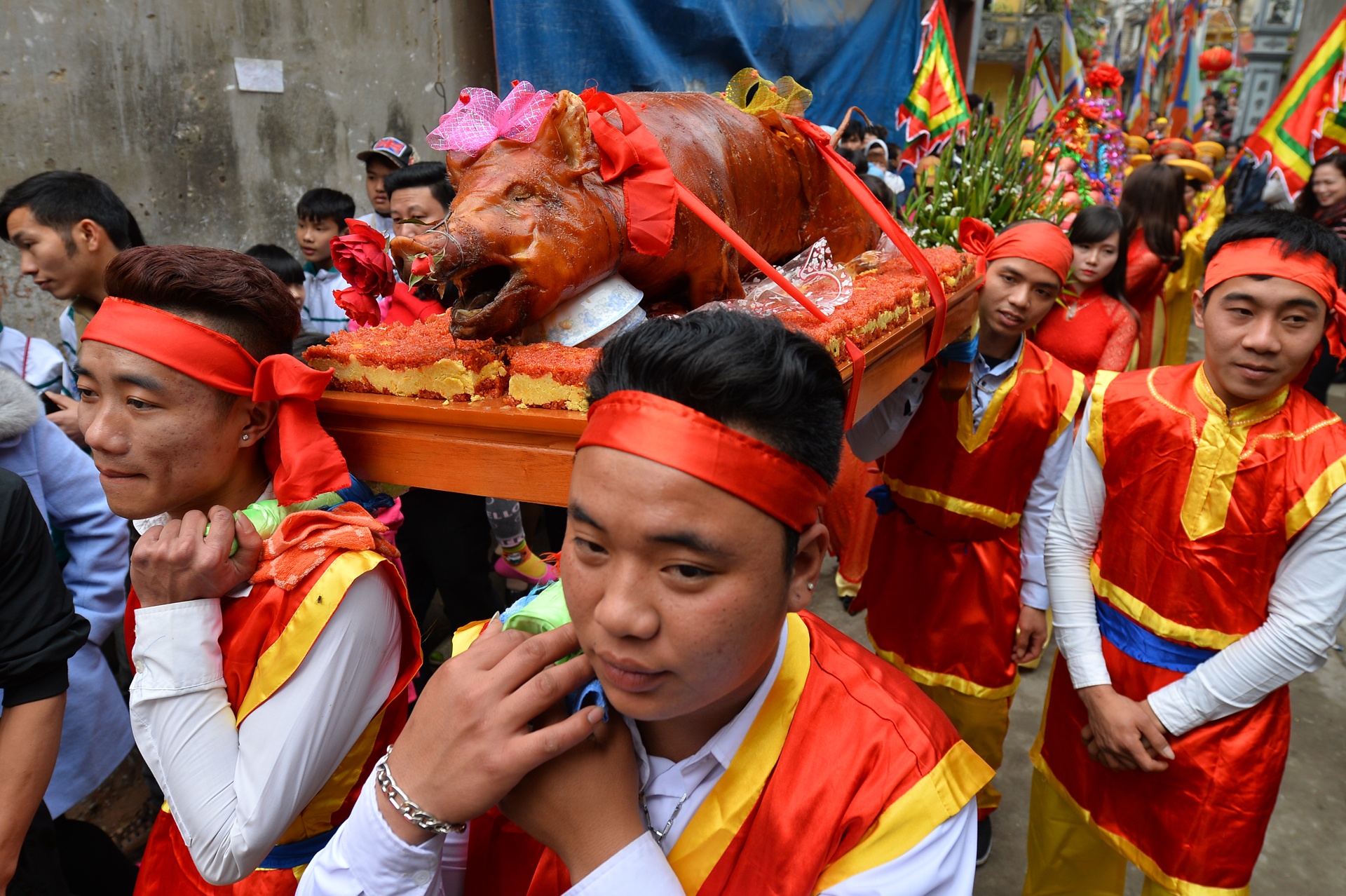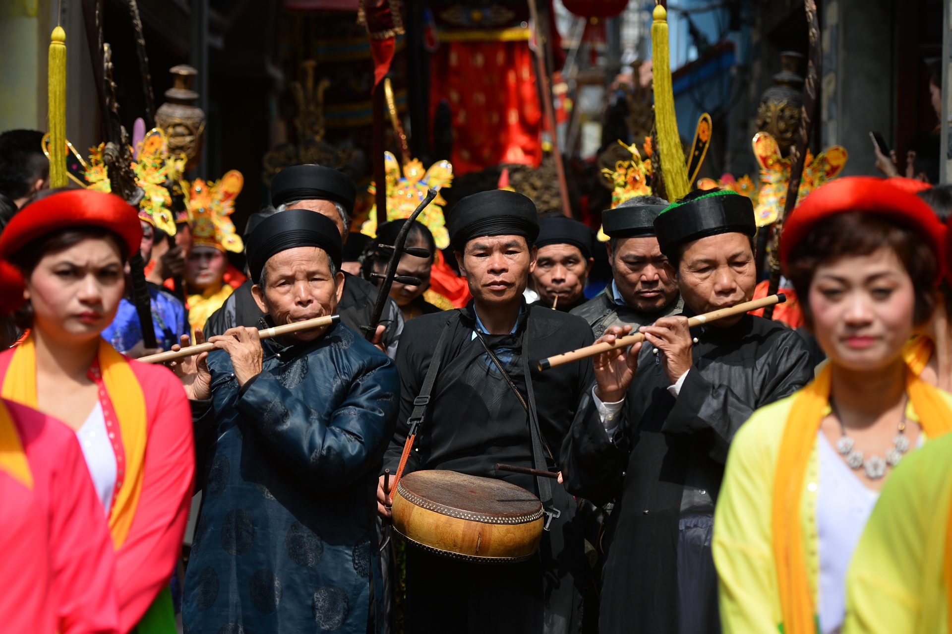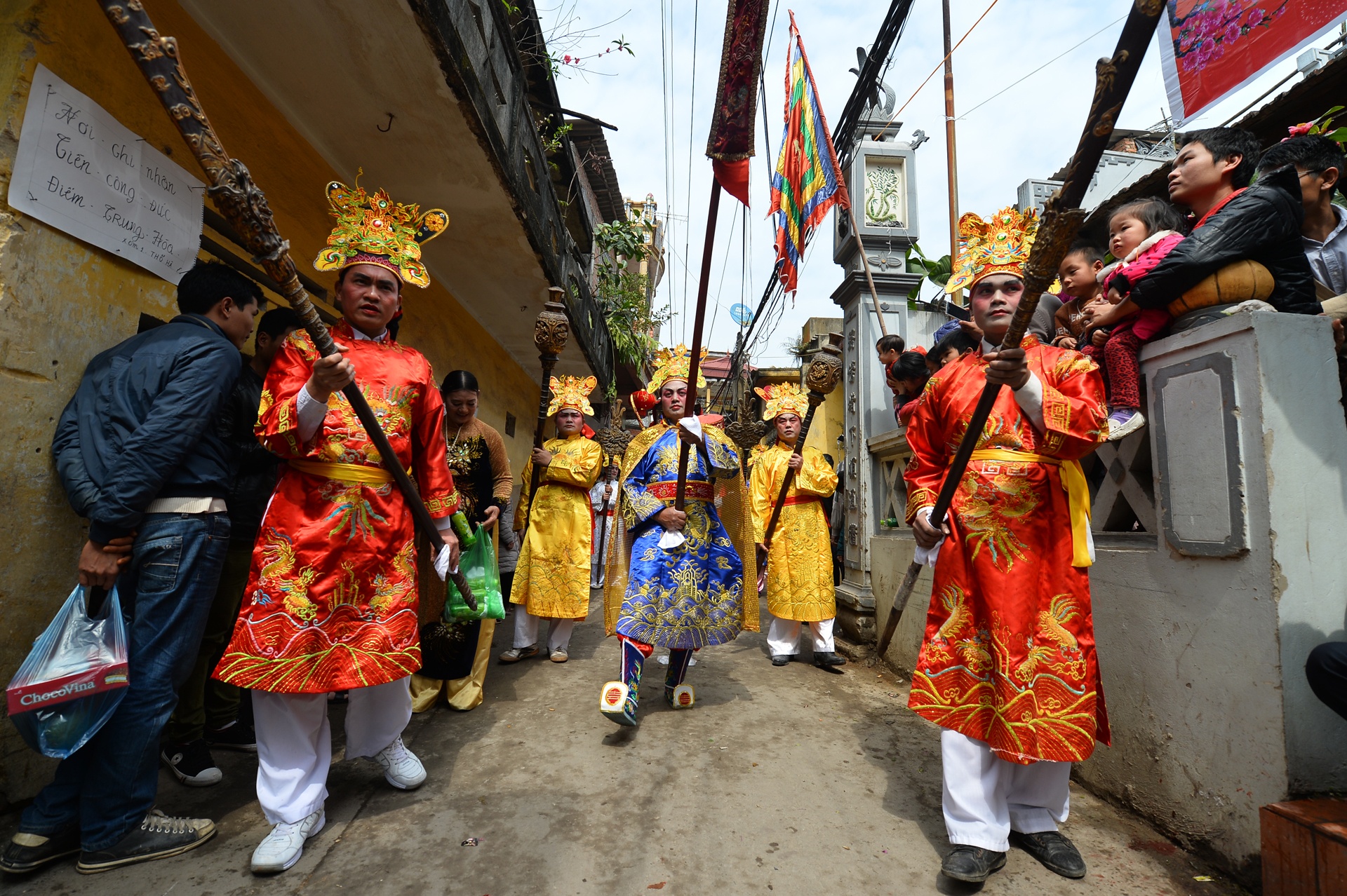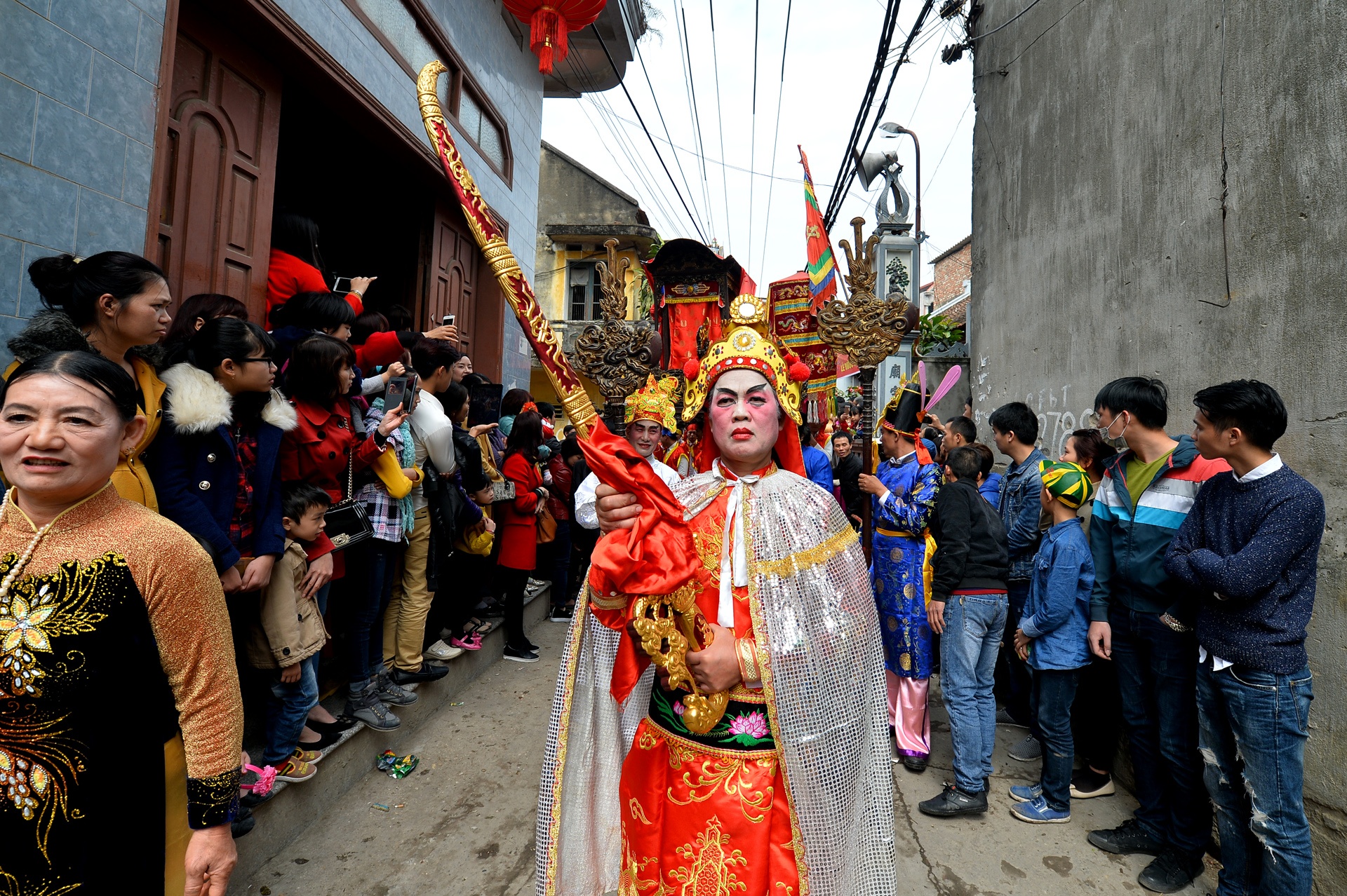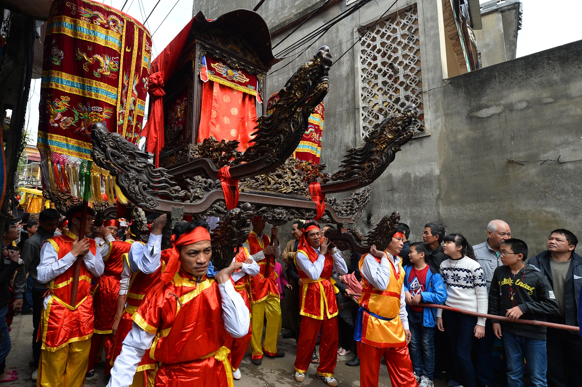 Tuy nhiên, phải 2 năm một lần lễ hội mới có phần rước long trọng này. 4 xóm trong làng luân phiên thay nhau tổ chức. Mỗi lần làng làm lễ long trọng, từ trẻ em đến người già cùng nhau mặc lên người những bộ đồ đẹp nhất.
