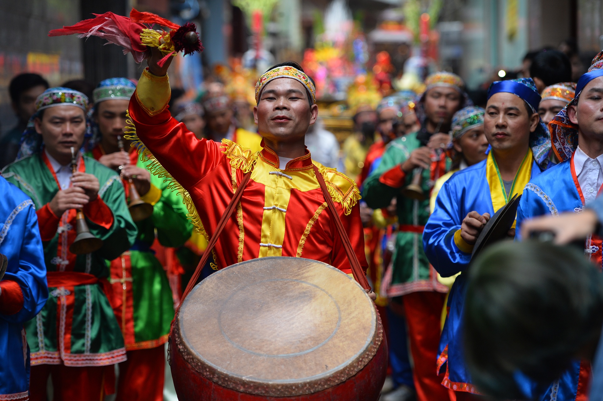 Đội bát nhã với kèn, trống, nhị, thanh la.
