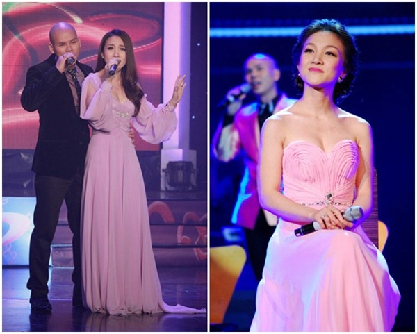 Sự thay đổi về phong cách là điểm cộng cho bà xã Phan Đình Tùng. Tuy nhiên, bộ cách này không che được khuyết điểm cánh tay hơi to của Ngọc Bích.