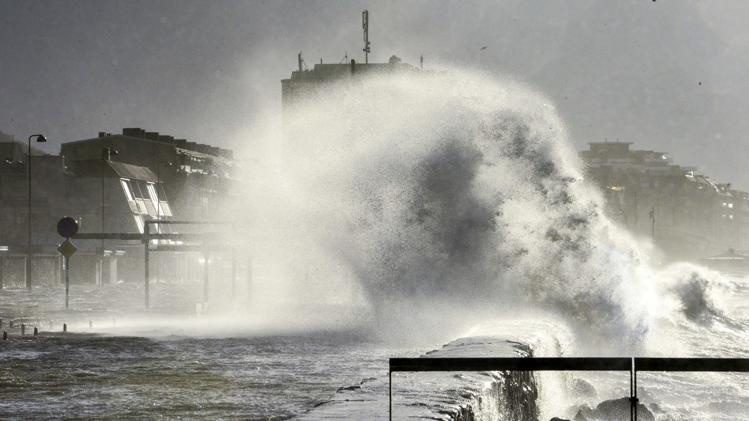 Sóng dữ ập vào thành phố Helsingborg ở phía nam Thụy Điển hôm 6/12. Bão bắt đầu tấn công Thụy Điển từ tối 5/12 khiến một người chết, vô số cây đổ và gây tình trạng mất điện diện rộng. Ảnh: Reuters