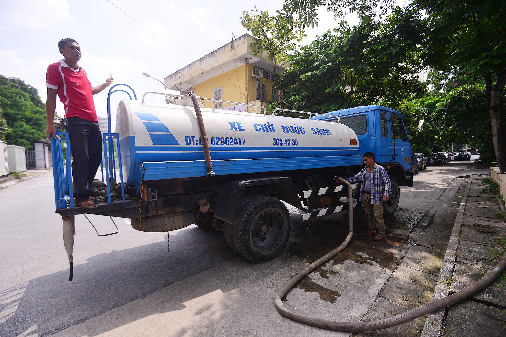 Chiều 21/8, hàng chục người dân phường Láng Thượng, Hà Nội đổ xô đi lấy nước từ xe cấp nước sạch. Trước đó người dân viết "cáo phó nước" để phản ánh tình trạng mất nước triền miên.