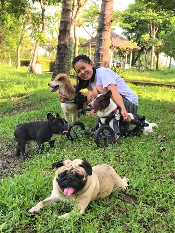 Thư còn học thêm chuyên ngành bác sĩ thú y để có kiến thức trong việc điều trị và chăm sóc cho chó, mèo khuyết tật.