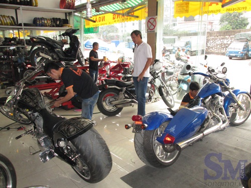 Cơ sở sửa chữa xe của Đức “Quảng Ngãi” giờ đã có đủ phụ tùng, phụ kiện cho dân chơi xe Harley. |