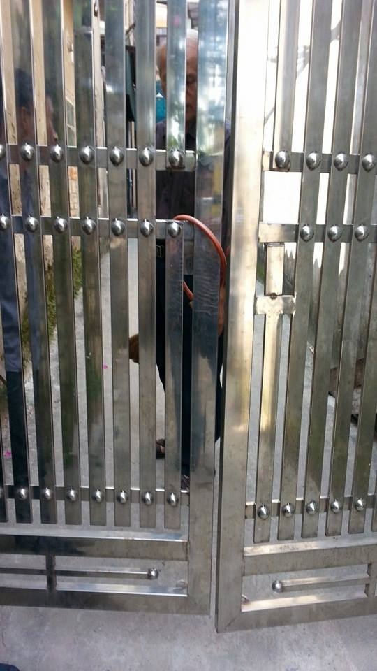 Tại cổng nhà riêng, một người đàn ông lớn tuổi nói lớn qua khe cửa: “Nhà anh Tường không có ai ở nhà cả, công an vừa triệu tập vợ lên rồi” rồi đóng kín lại.