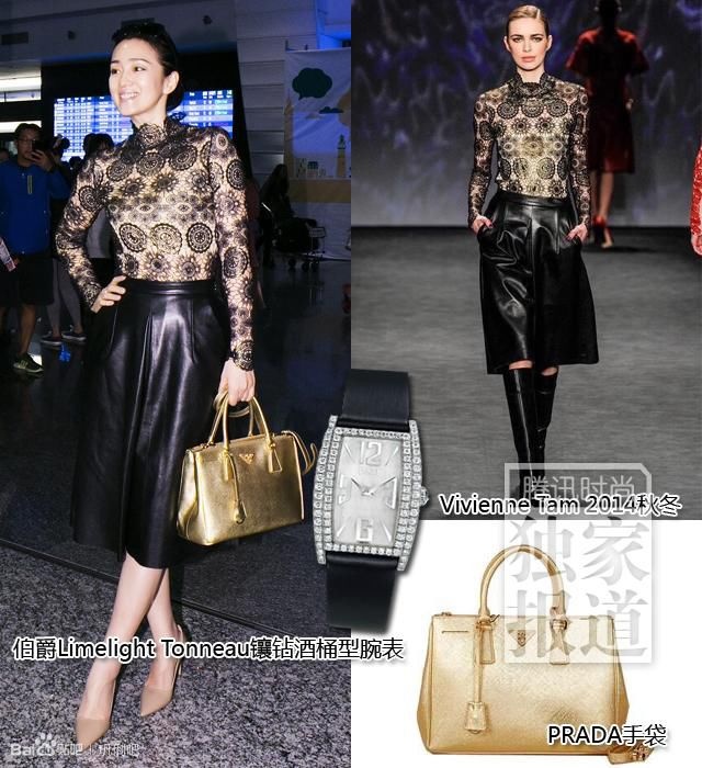 “Tôi thích khiến bản thân trẻ trung với những chiếc váy dài qua đầu gối” - Củng Lợi tiết lộ. Chị thường chọn những bộ váy đơn giản khi dạo phố và tham dự sự kiện cộng đồng. Bạch Cốt Tinh của Tây du ký 3D từng hút ống kính khi diện váy Vivienn Tam, phối túi Prada và đồng hồ của Limeilight Tonneau. |