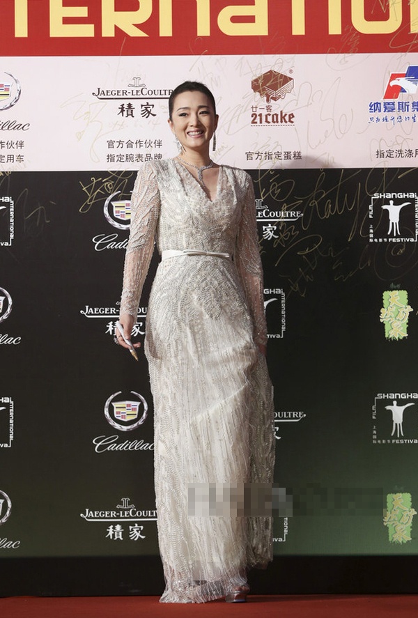 Củng Lợi là quý bà thời trang của làng giải trí Hoa ngữ. Các nhà phân tích cho rằng, một người nghệ sĩ ở tuổi 50 vẫn ở phong độ đỉnh cao như Củng Lợi là điều khó có. Tại sự kiện Kim Mã, chị khiến nhiều sao trẻ lép vế khi diện váy màu đồng khoét cổ chữ V gợi cảm của thương hiệu Ports 1961, phụ kiện sang trọng mác Possession. |