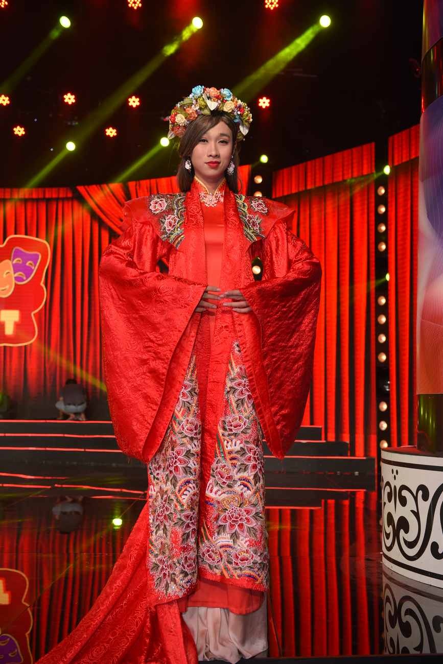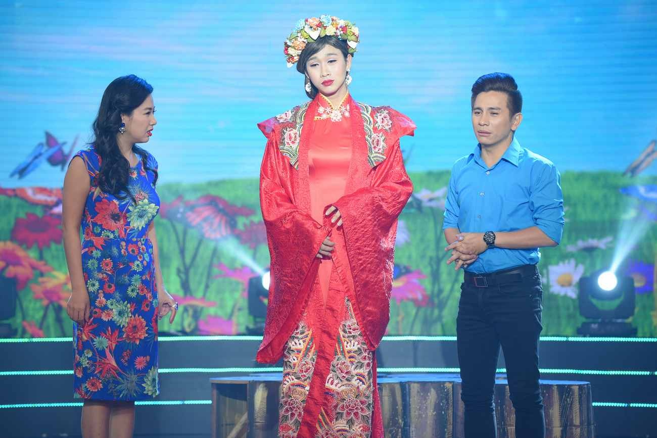 Hải Triều đặt may bộ áo dài đỏ rực rỡ của nhà thiết kế Hứa Mẫn, được gia công bằng tay, thêu, kết cườm, đá lấp lánh ròng rã trong vòng 2 tháng. Chiếc áo dài có tà dài bết đất, áo khoác nặng khoảng 10 kg và trị giá 50 triệu đồng. Tuy được đầu tư công phu nhưng anh vẫn bị bộ đôi Lê Khánh và Đình Toàn dè bỉu là “bà Chúa xuân vừa già vừa xấu từ trước đến nay”. Tập 41 được phát sóng tối 10/2 trên THVL1. |