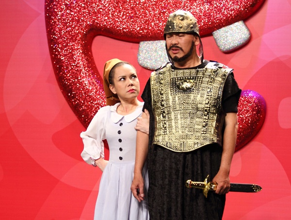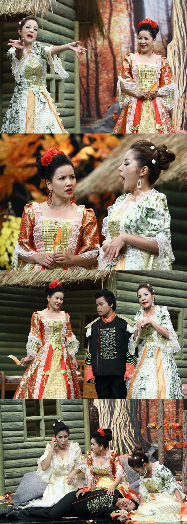 | Thúy Nga, Ngọc Trinh kết hợp với Cát Tường, Lê Khâm quậy tưng trong tiết mục "Bạch Lùn và 3 cô Tiết". |