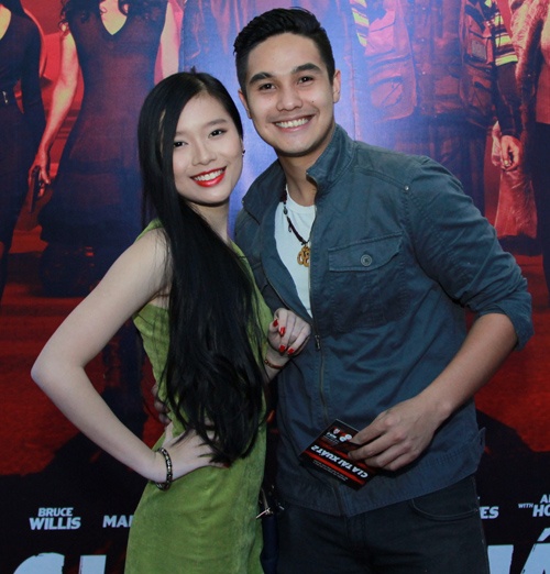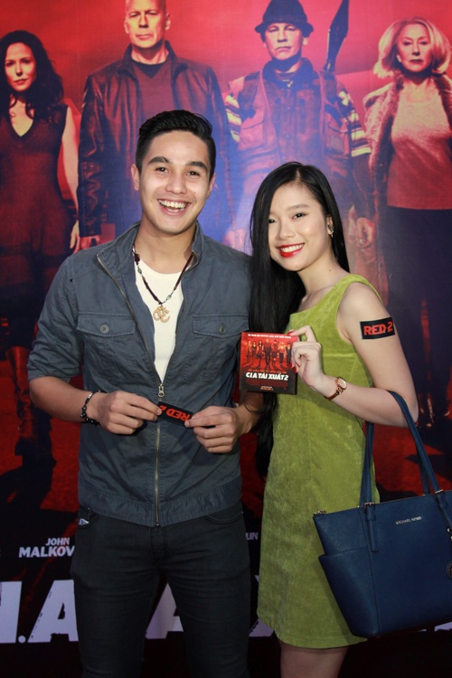 | Baggio và Mi Minh vui vẻ cười đùa bên nhau trong buổi họp báo giới thiệu bộ phim Red 2 - CIA tái xuất ở Sài Gòn. |