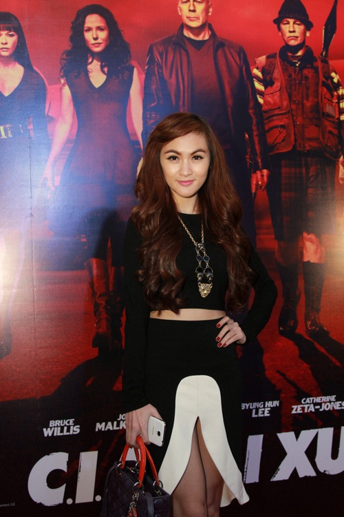 Hot girl Kelly diện váy xẻ táo bạo khi đi xem phim. |