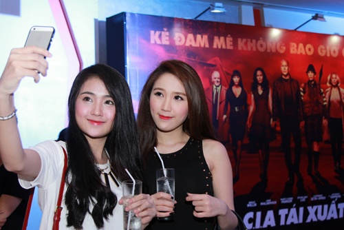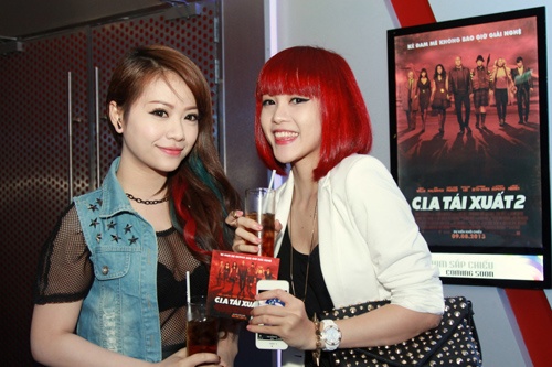 Thiều Bảo Trâm đi xem phim với một cô bạn ăn vận rất táo bạo. |