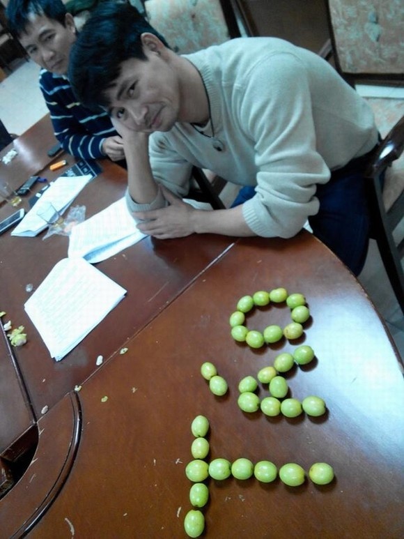 | Xuân Bắc nghịch ngợm xếp hình chữ Táo bằng... quả táo. |