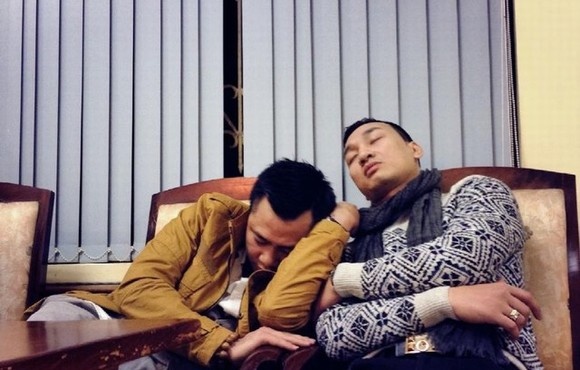 | Thành Trung, Tự Long tranh thủ chợp mắt. |