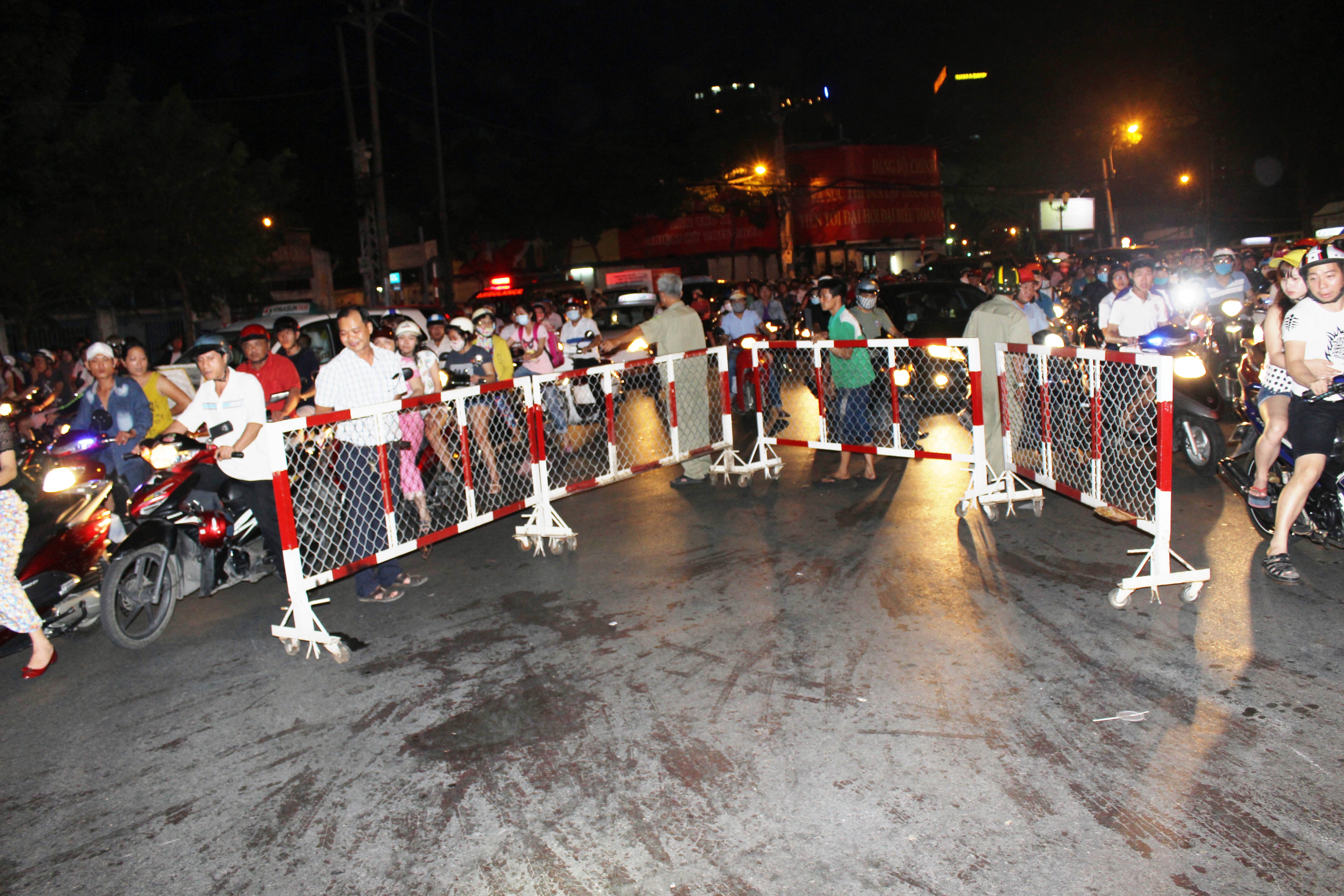 | Hiện trường nơi anh Quang bị cô gái đâm gục và tử vong tại vòng xoay Dân Chủ. Ảnh: T.N. |