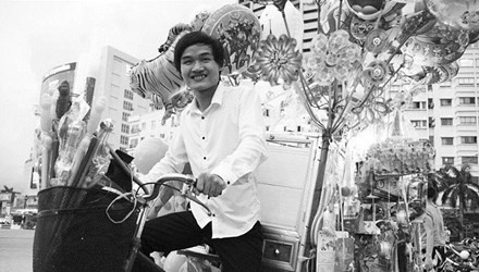 | Hằng ngày Phạm Minh Đáp cùng chiếc xe đạp đi khắp các con phố bán hàng rong mưu sinh. |