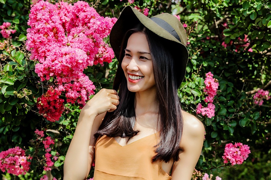 Bạn gái Bằng Kiều diện áo hai dây phiêu giữa cánh đồng hoa