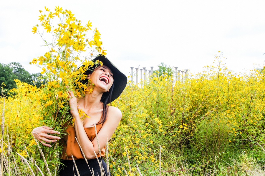 | Khung hình ghi lại những khoảng khắc tự nhiên nhất của nữ người mẫu. Cô cười đùa vui vẻ và tràn ngập hạnh phúc. |