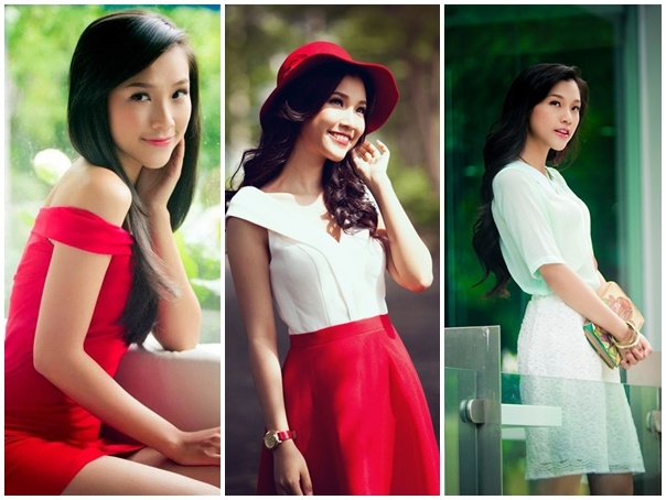 Ngoài gam đỏ, Hoàng Oanh còn rất chuộng gam màu trắng trong trẻo. Những bộ trang phục từ nữ tính đến kiêu sa của người đẹp đều hướng đến vẻ thanh lịch, trang nhã.
