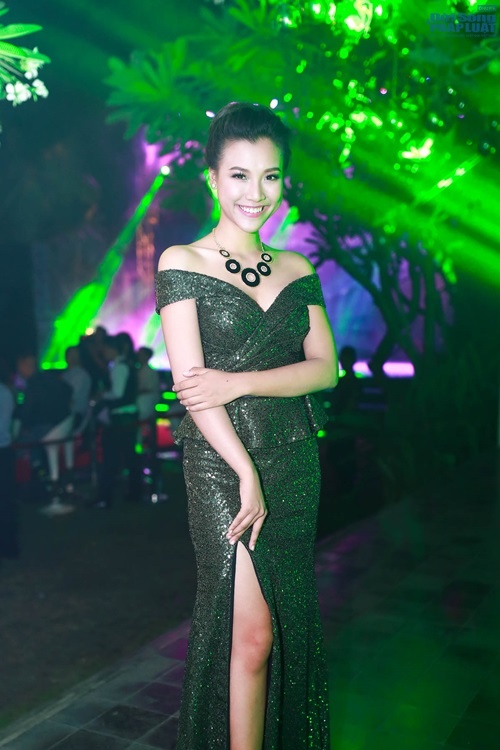 | Chân dài chuộng tông màu đen khi đi sự kiện. Trang phục gợi cảm của Thùy Linh có những khoảng hở vừa đủ. |