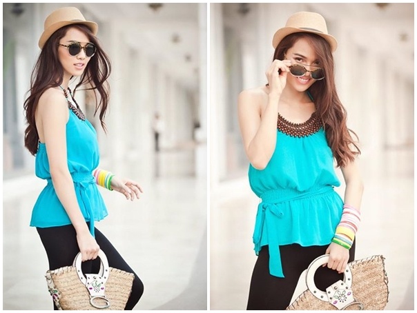 | Về mùa hè, người đẹp diện áo thun, quần jeans đơn giản hoặc váy hai dây in họa tiết nhã nhặn. |