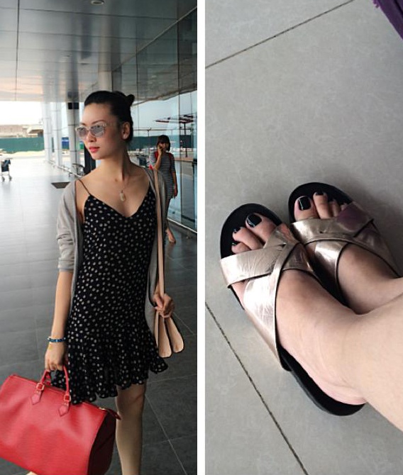 | Người đẹp nhanh nhạy với xu hướng áo hai dây và dép lê phóng khoáng. |