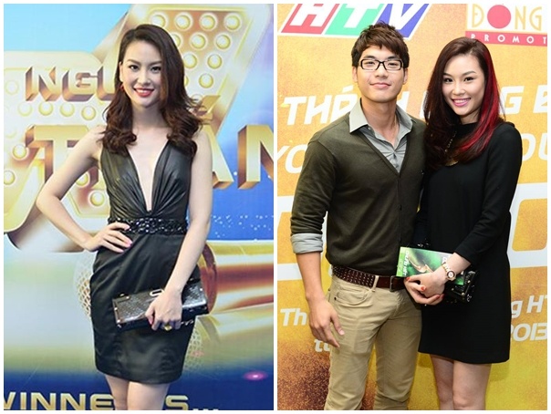 | Kim Cương thường chọn trang phục ôm sát gợi cảm khi xuất hiện cùng Ưng Hoàng Phúc tại các sự kiện giải trí. |