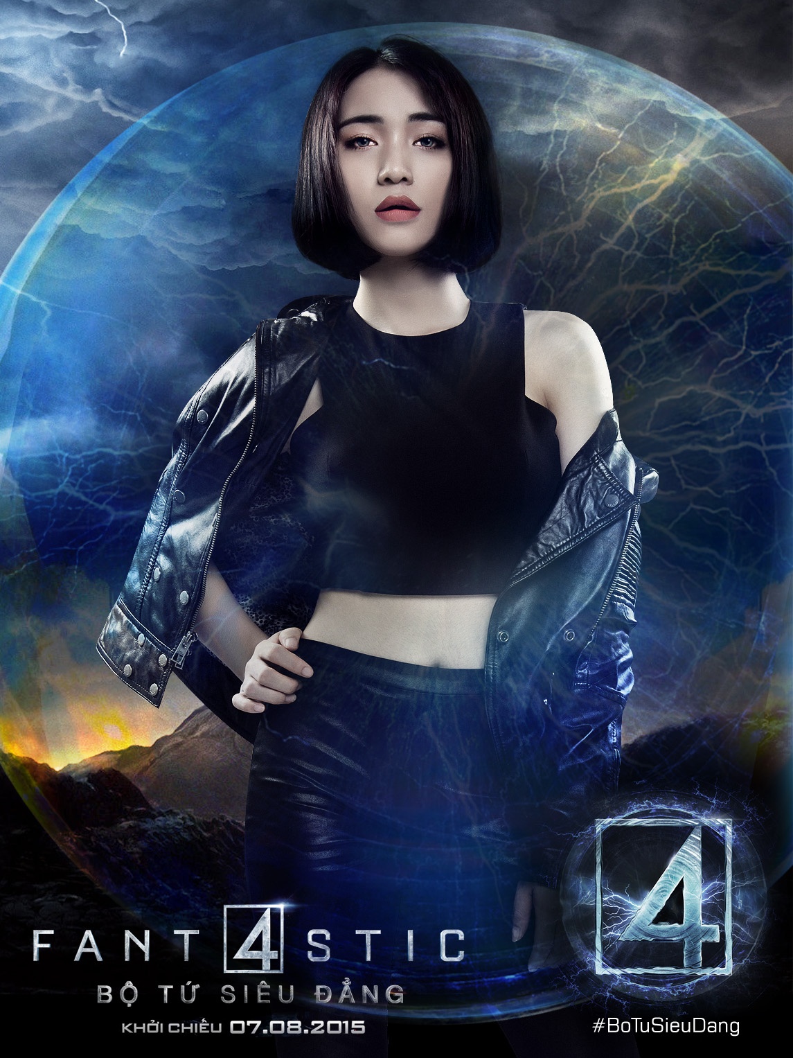 | Mới đây, quán quân Học viện ngôi sao 2014 - Hoà Minzy tham gia chụp hình cùng ê-kíp. Nữ ca sĩ hóa thân thành người tàng hình Sue Storm, “bóng hồng” duy nhất trong nhóm siêu anh hùng của Marvel mang tên Bộ tứ siêu đẳng. |
