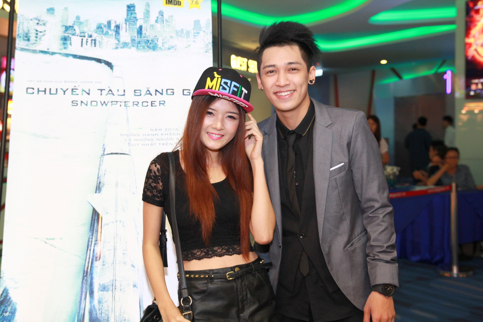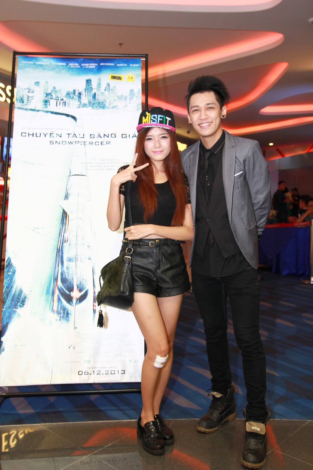 Hot girl Lily Luta tỏ ra rất thoải mái và vui vẻ khi sánh đôi cùng anh bạn Tronie đi xem phim "Chuyến tàu băng giá" dù vừa trải qua một vụ đụng xe lúc đêm khuya.