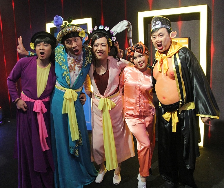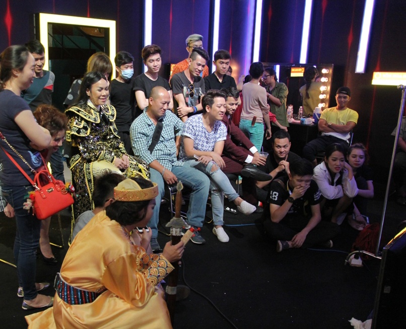 Mai Hồ vui vẻ trò chuyện cùng Trấn Thành và các nghệ sĩ khác khi có mặt ở phòng hóa trang của chương trình hài phát sóng vào tối chủ nhật hàng tuần.